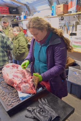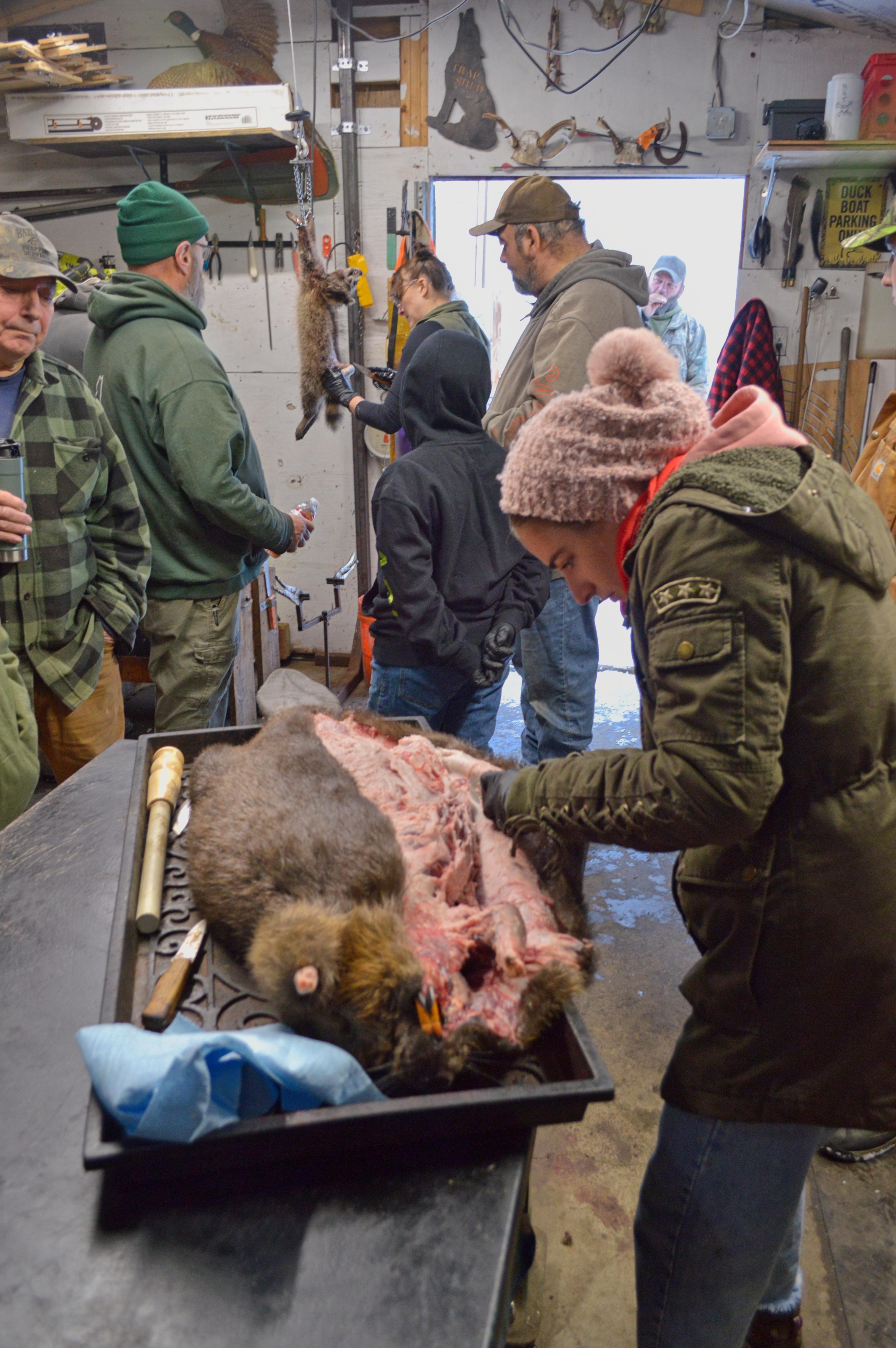 Critters processed included otter, beaver, skunk and racoon. Attendees learned about best practices (maint of equipment, importance of first aid kit nearby, etc.) skinning, fleshing, boarding and hooping fur, gland removal, removal of meat for consumption and a brief discussion of zoonotic-al diseases and safety measures.